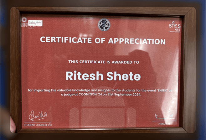 Delivering Design Session and being judge at EN/EX event of COGNITION'24 hosted by SIES College